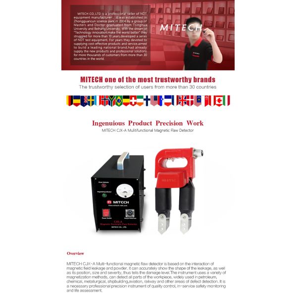 CJX-A Magnetic Particle Tester is our newly-developed equipment for the testing of casting quality using magnetic particles and features a combination of advantage of various overseas and domestic equivalent products. It features an imposed magnetic field and thus is compact and lightweight. The highly integrated circuit adopted has rendered our product a combination of all functions of various types of equipment.
